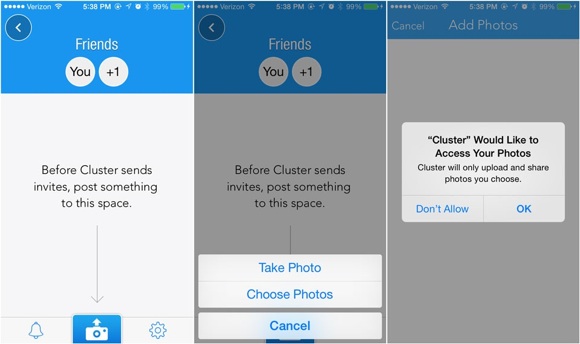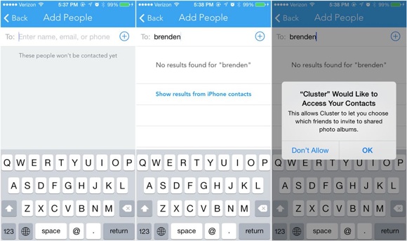 在要求通讯录权限这一方面,Cluster选择了“先让用户尝点苦头”。当用户发现他们几乎无法搜索到朋友的时候,点选“显示通讯录好友”并允许通讯录获取权限的比例达到了100%。