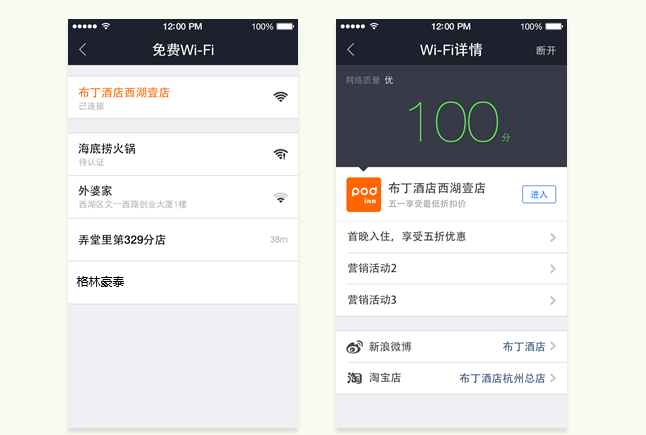 在发现用户层面,基于用户已有的浏览和支付行为,支付宝将进行相关的商户推荐,或是进行购买后服务窗的关注推荐。支付宝已经在小范围测试“电子围栏”功能,对于已经开展合作的商家来说,用户到店后,不再需要开口向服务员问询WiFi密码,而是通过支付宝直接连接上店内WiFi,未来还会就iBeacon等功能进行更多的服务尝试——这也能带来一部分的客户转化。