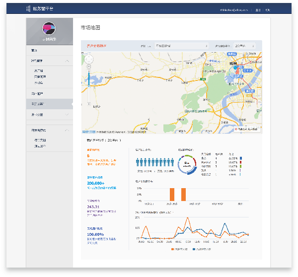 除了与微信公众号类似的图文送达、摘要阅读人数、详情阅读人数、转化率等数据,支付宝商户免费的实时市场地图,与高德地图的定位服务配合,将为商户提供某一位置附近两公里商圈范围内,用户的性别、年龄分布、支付类目偏好等信息,以及24小时内PC和无线端的购物的趋势变化。实时市场地区功能,还可以反馈特定区域已有客户数量、潜在用户规模、单位客单价以及无线用户的数据和比例。